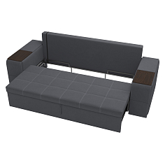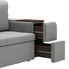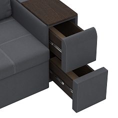 Купили диван угловой в зал, комната преобразилась сразу же, цвет очень удачный. Материал велюр, надеюсь прослужит долго. Удобные сиденья и спинка, в меру мягкий, лежать и сидеть очень комфортно. Раскладывается легко, спальное место просторное, как полноценная 2х-спальная кровать. Сбоку вместительный выдвижной ящик-поместились все игрушки ребенка. Спасибо, вся семья довольна покупкой.