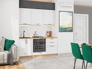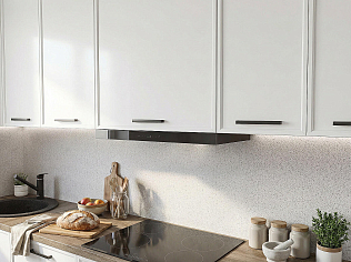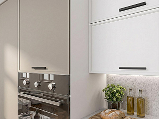 Главный плюс: много шкафчиков.  Выбрали вариант сандал белый. И не прогадали. Смотрится великолепное. Жаль, что двери идут без доводчиков.