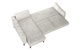 Купили диван угловой в зал, комната преобразилась сразу же, цвет очень удачный. Материал велюр, надеюсь прослужит долго. Удобные сиденья и спинка, в меру мягкий, лежать и сидеть очень комфортно. Раскладывается легко, спальное место просторное, как полноценная 2х-спальная кровать. Сбоку вместительный выдвижной ящик-поместились все игрушки ребенка. Спасибо, вся семья довольна покупкой.